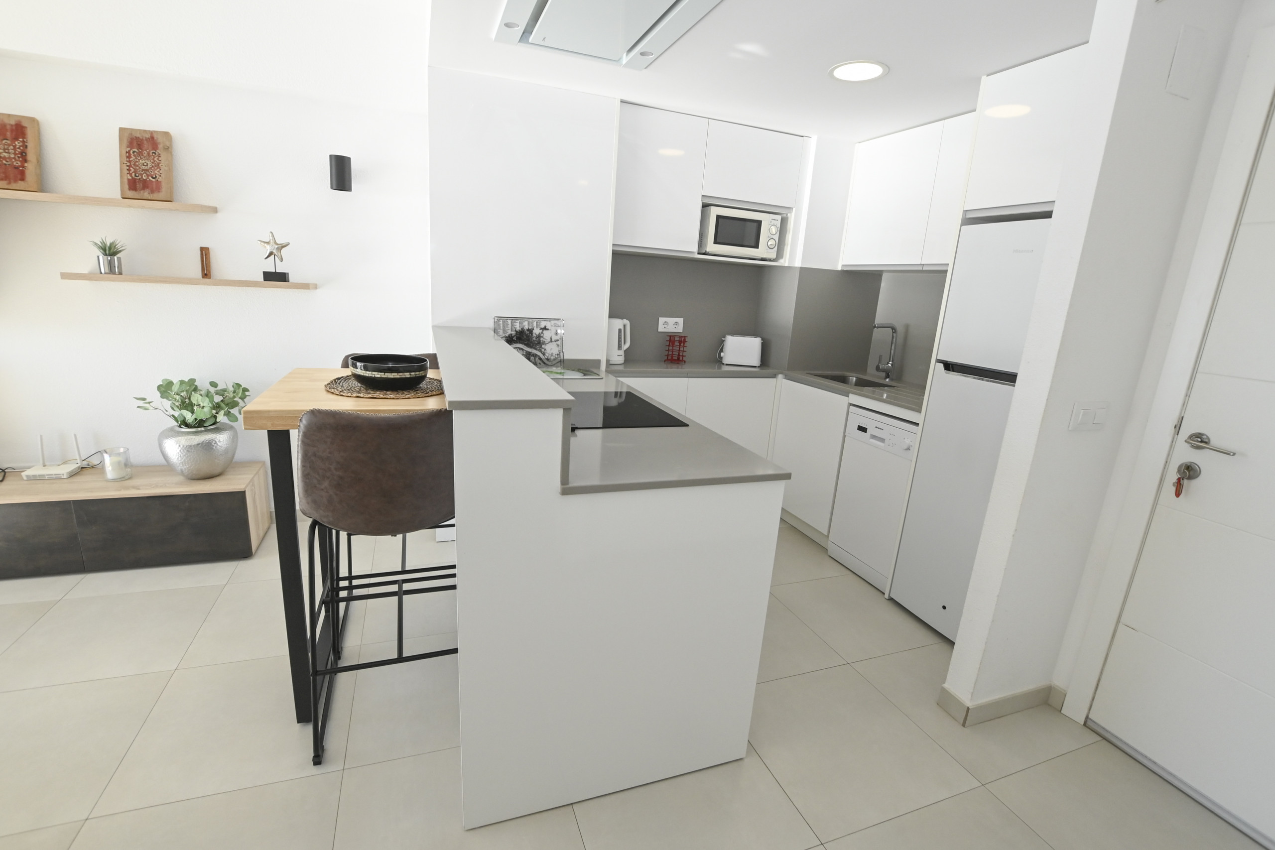 de totale renovatie van een ouder appartement met alle nutsvoorzieningen die ik nog nergens heb kunnen ondervinden in Spanje . De keuken was volledig ingericht met alle toestellen en de nodige pannen, messen en borden
