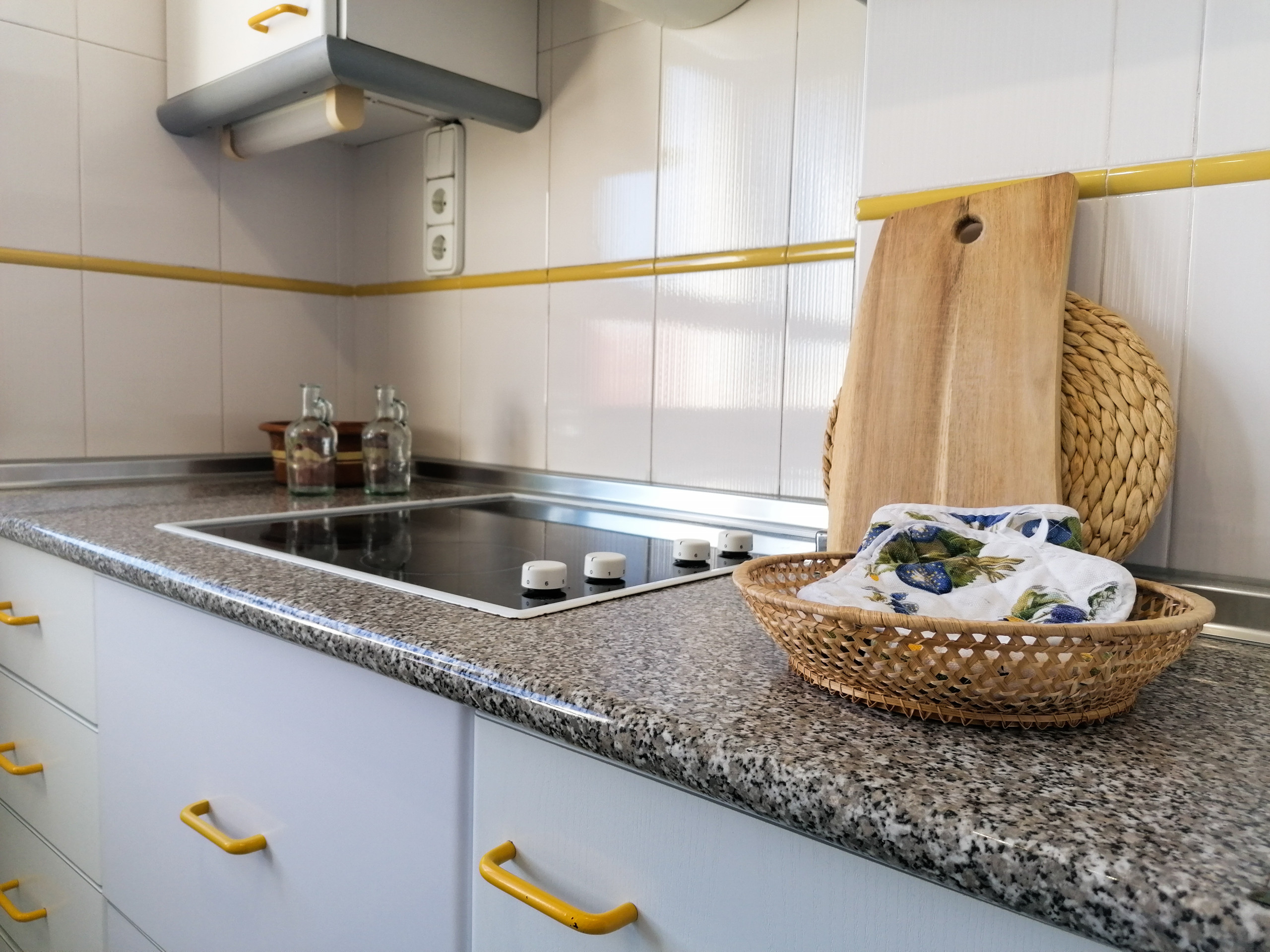 Dans la cuisine ouverte vitrocéramique, un réfrigérateur, micro-ondes, un congélateur, un lave-linge, un lave-vaisselle, de la vaisselle, des ustensiles de cuisine, une cafetière et un grille-pain sont fournis.
